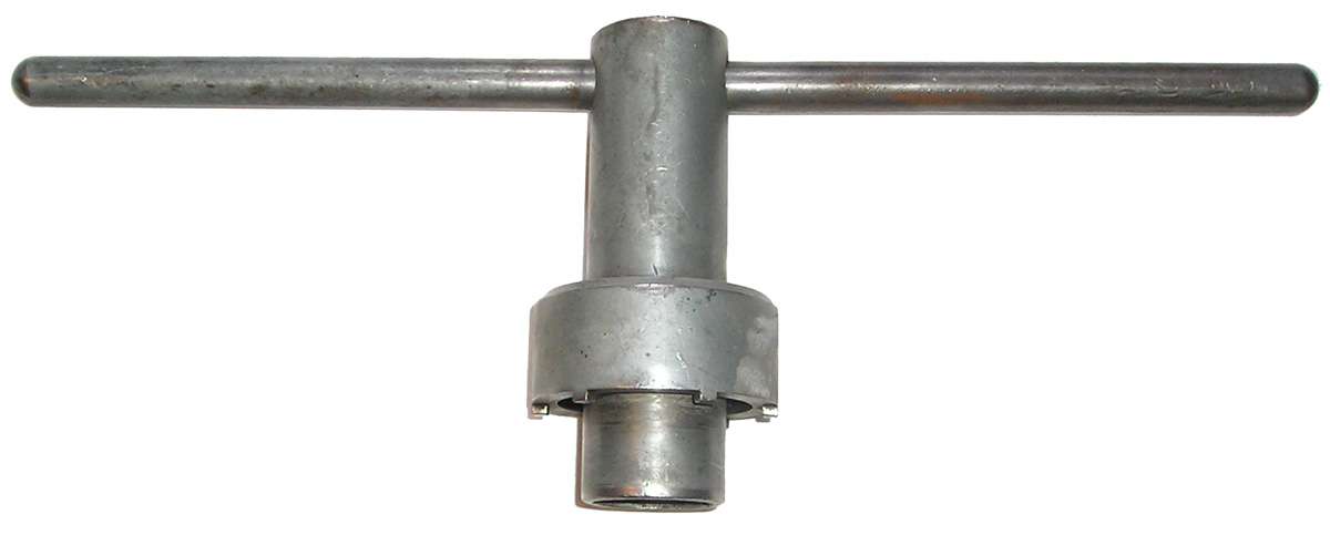 This tool, originally designed to remove the Propeller Shaft Bearing in 1941-46 Chevrolet 3/4 and 1 1/2 Ton Trucks, can be used also to remove the Transmission Mainshaft Bearing in 1948 and later 1 1/2 Ton, 2-Ton, and COE Trucks, and 1/2, 3/4, and 1 Ton Trucks with 4-Speed Transmissions. The tool quickly and easily removes the Mainshaft Rear Bearing from the transmission mainshaft. To use, position the jaws of the puller under the bearing, push the tapered spreader sleeve down to secure the jaws, then turn the center screw against the end of the mainshaft to remove the bearing easily from the shaft.
